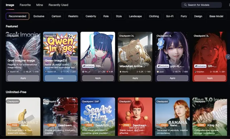 まず画像生成AIは「SeaArt」です!